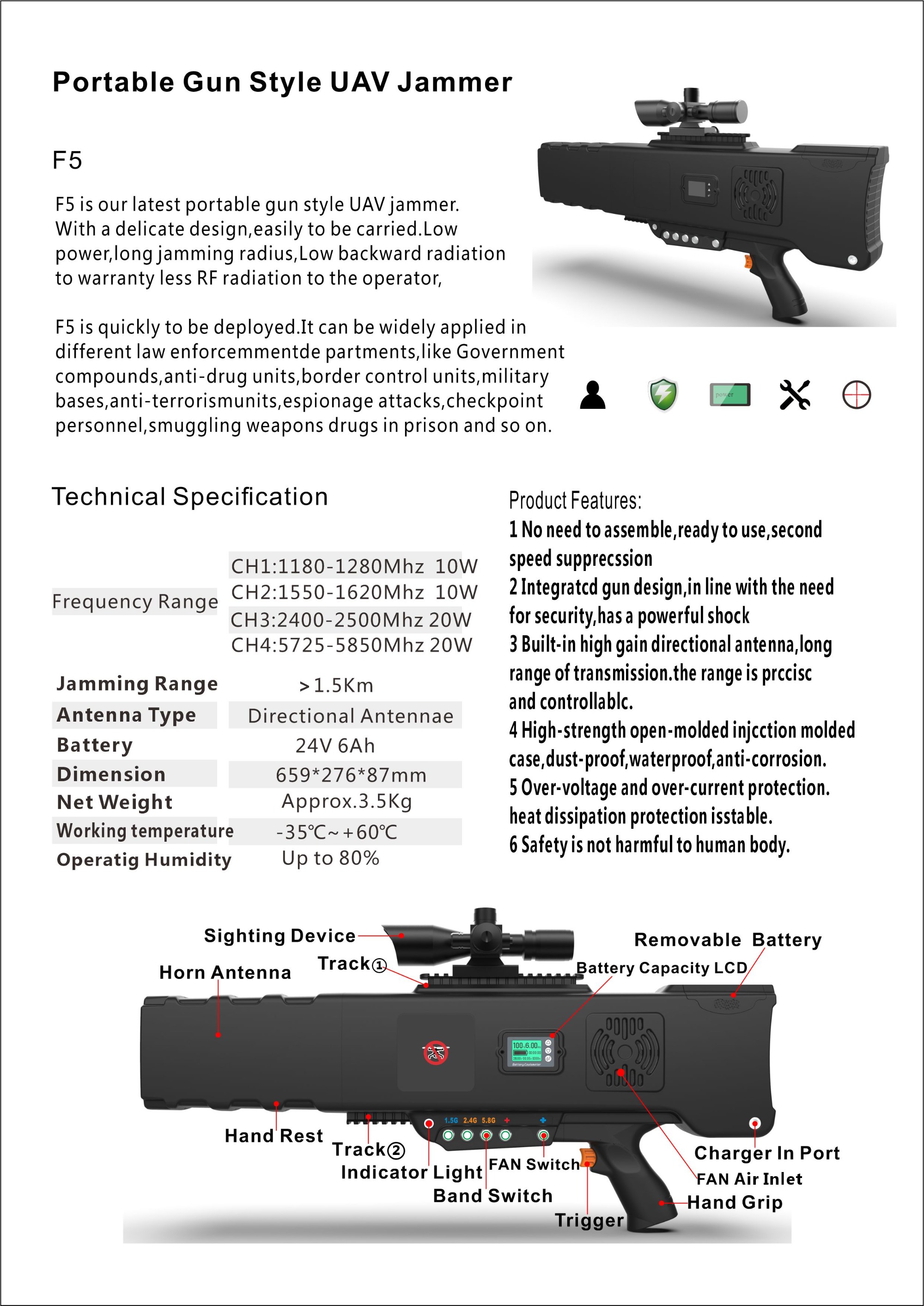 F5 is quickly to be deployed.t can be widely applied indifferentlawenforcemmentde partments.like Governmentcompounds,anti-drug units,border controlunits,militarybasesanti-terrorismunits,espionage attacks,checkpointpersonnelsmuggling weapons drugsin prisonand soon