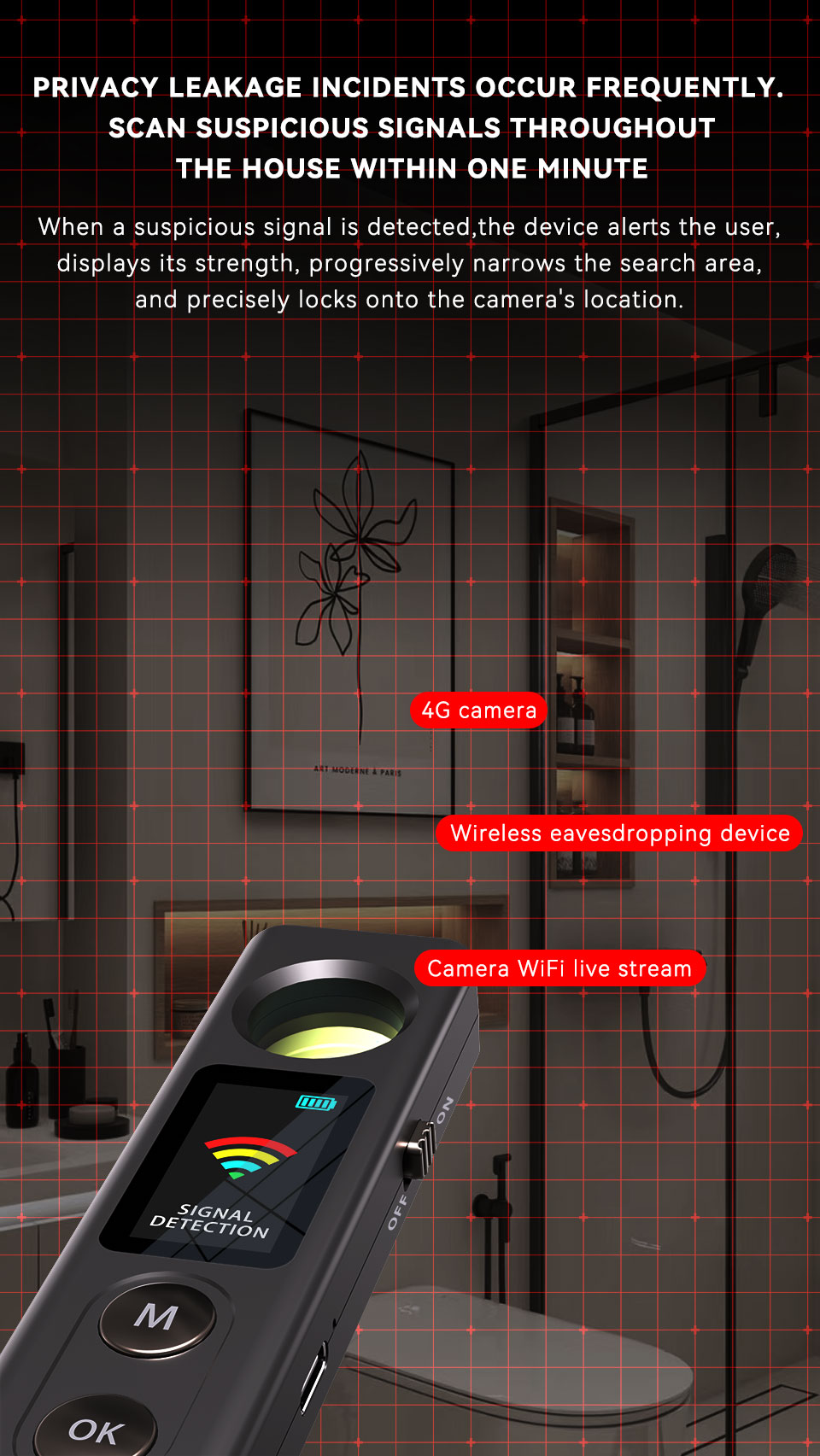 Signal Detection: 4G cameras, wireless eavesdropping devices, cameras with WiFi live streaming