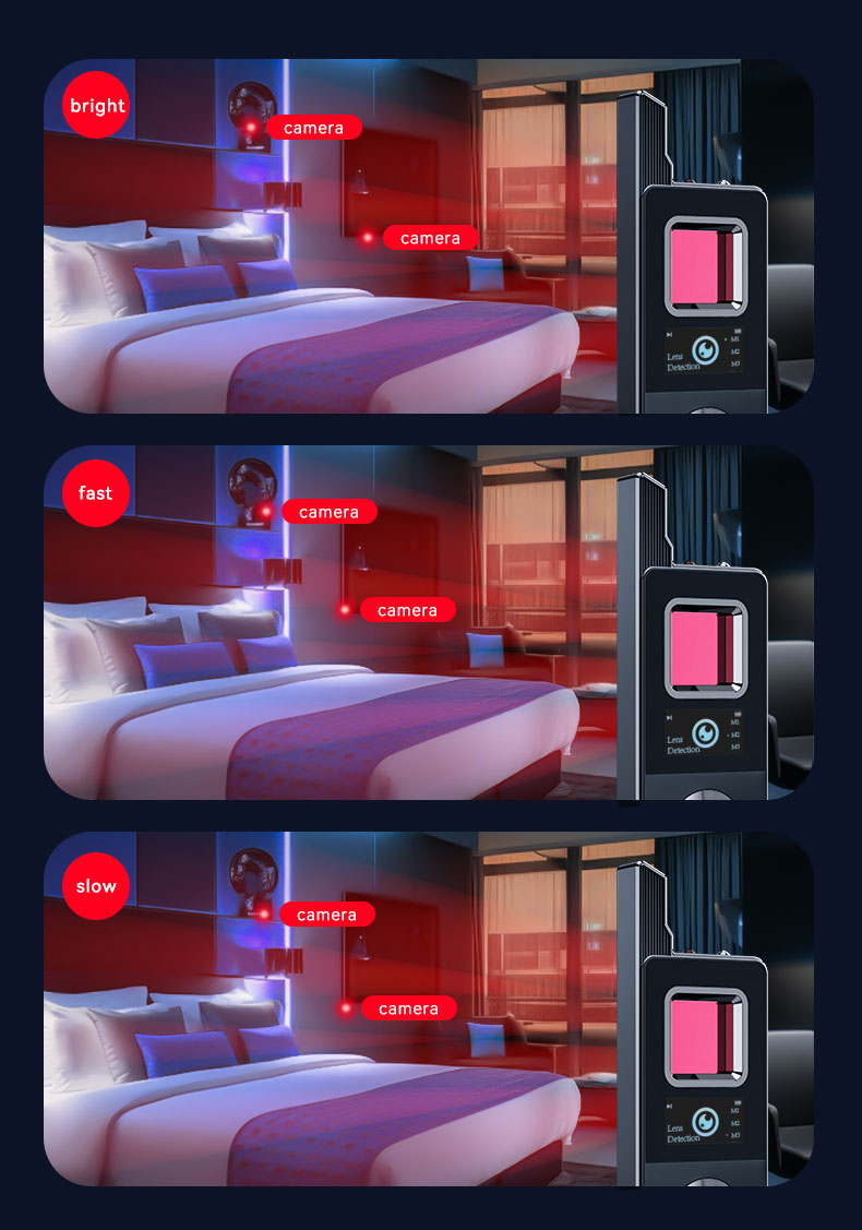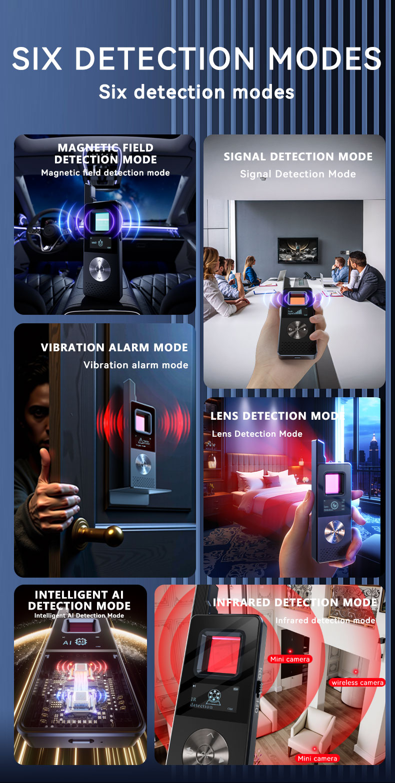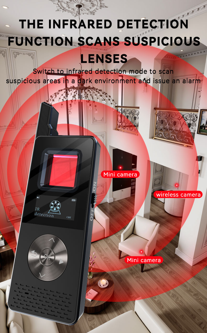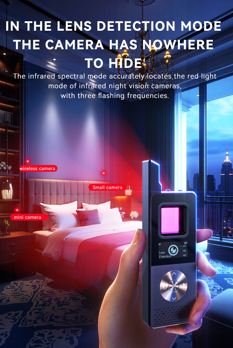 Lens Detection Mode: Detects wireless cameras, small cameras and mini cameras.