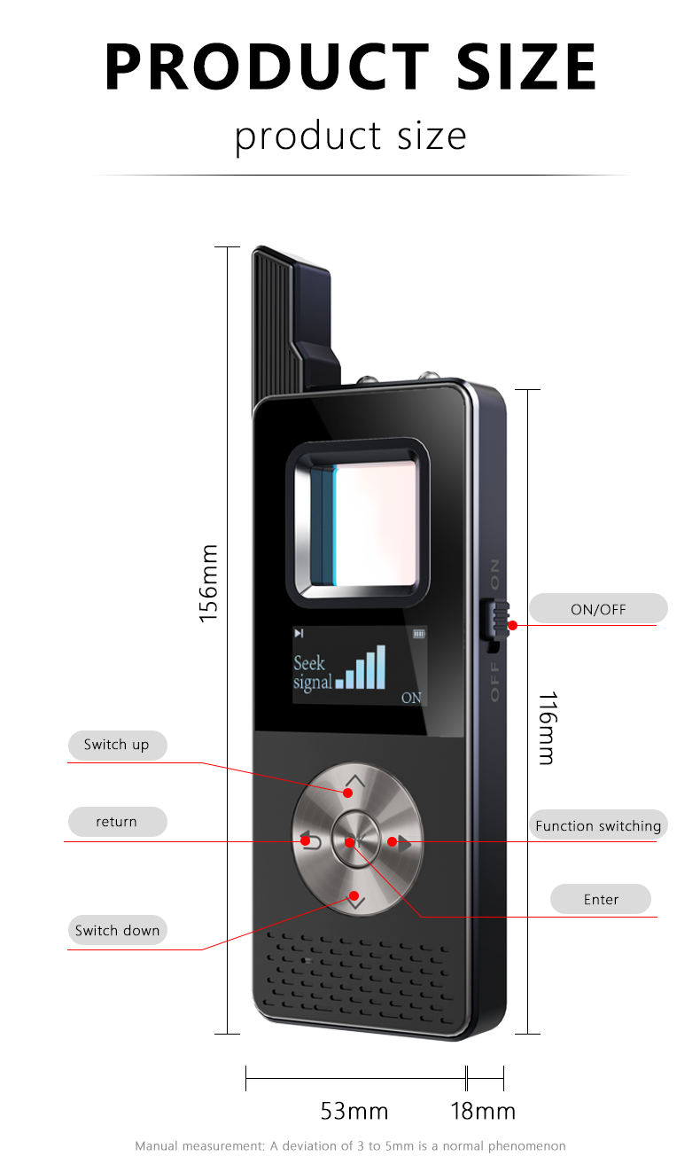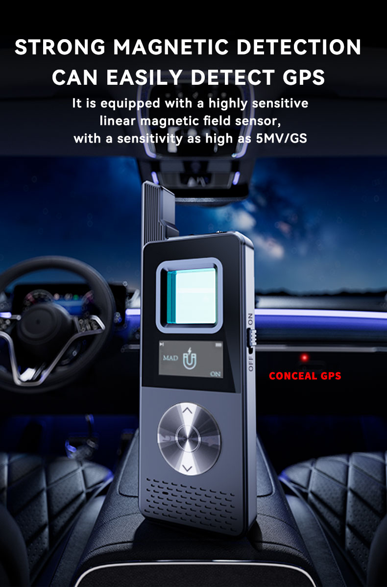 Magnetic Field Detection Mode: Enables easy positioning of GPS trackers, equipped with a high-sensitivity linear magnetic field sensor with a sensitivity of up to 5MV/GS, effective for hidden GPS trackers.