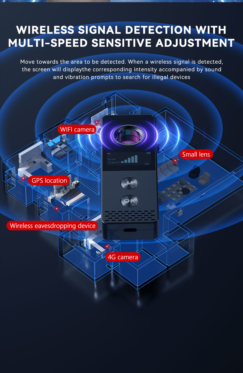 Wireless Signal Detection Detectable devices: WiFi cameras, GPS locators, wireless eavesdropping devices, 4G cameras, micro lenses.