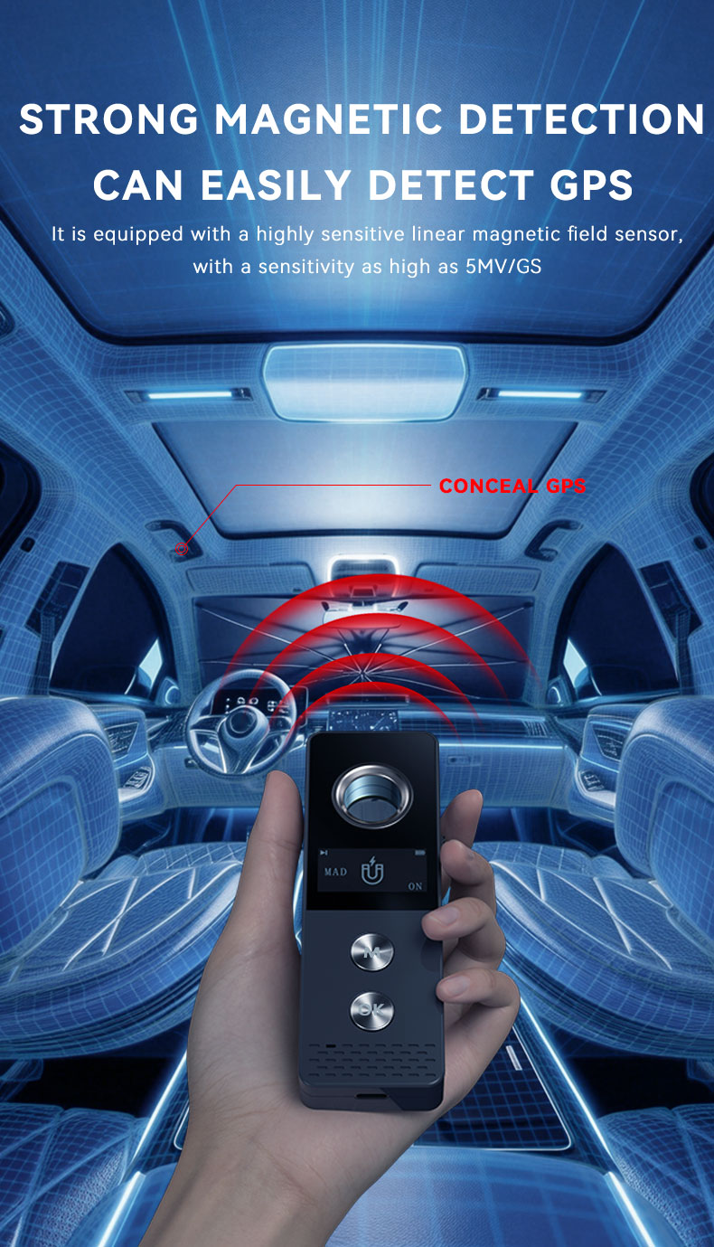 Strong Magnetic Detection Easily detect GPS positioning with a built-in high-sensitivity linear magnetic field sensor with a sensitivity of up to 5MV/GS, capable of finding hidden GPS trackers.